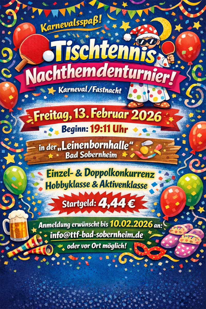 Nachthemdenturnier am Freitag,13.02.2026